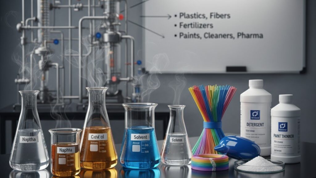 Petrochemicals are fundamental chemical compounds derived from crude oil and natural gas, serving as the building blocks for a vast array of materials like plastics, synthetic fibers, and fertilizers. Solvents are liquids, often themselves a type of petrochemical derivative, used to dissolve, suspend, or extract other substances, making them crucial in processes like manufacturing paints, cleaning, and pharmaceuticals.